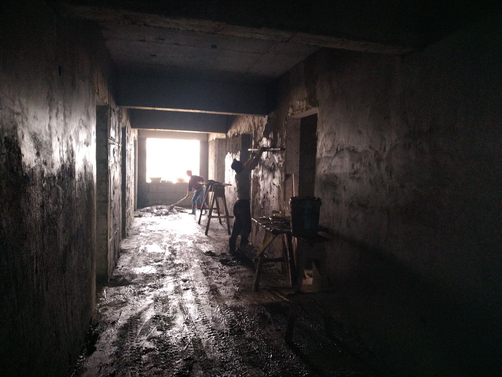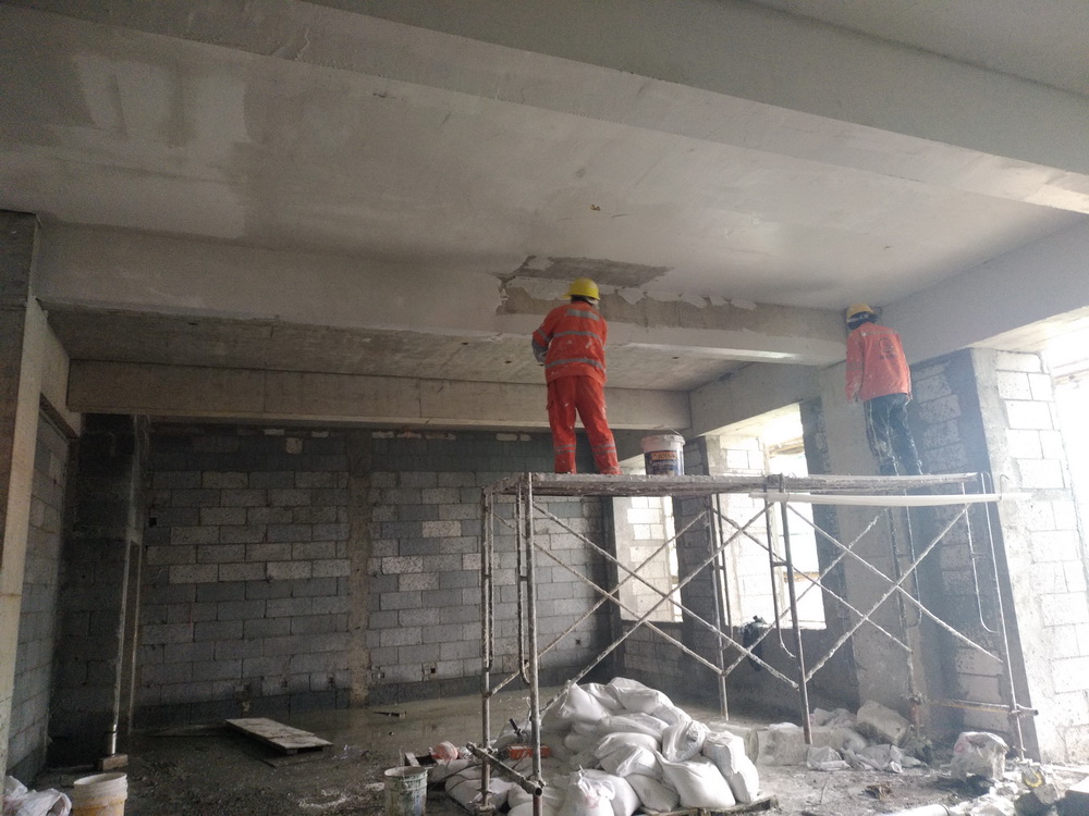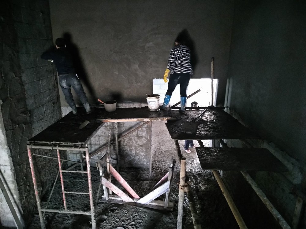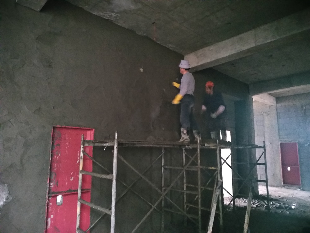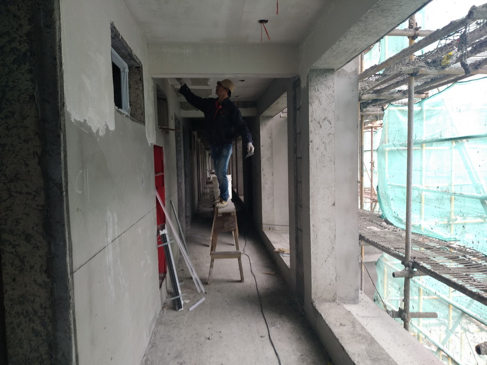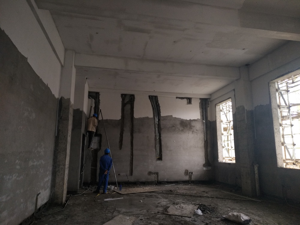 5. 一食堂:内墙灰饼完成,粉刷20%;