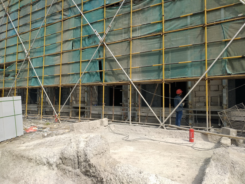 4. 文科楼:内墙完成粉刷40%,外墙线条、灰饼、钢丝网完成80%;