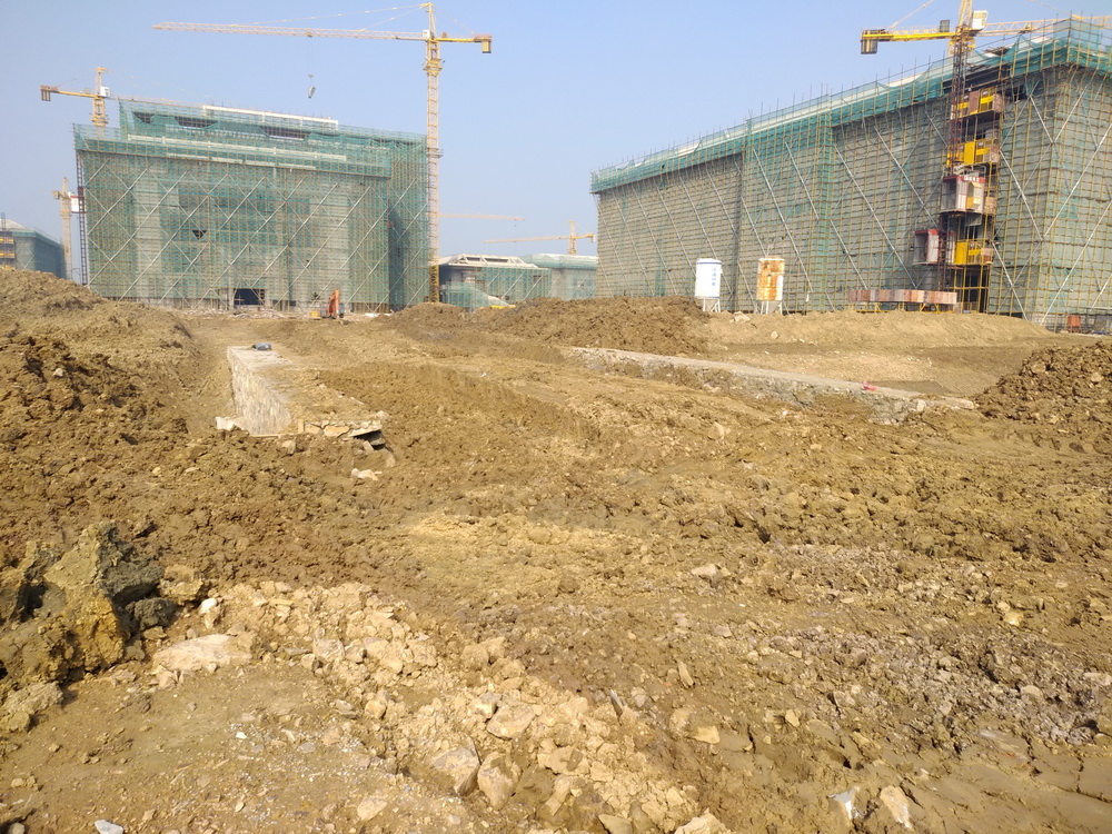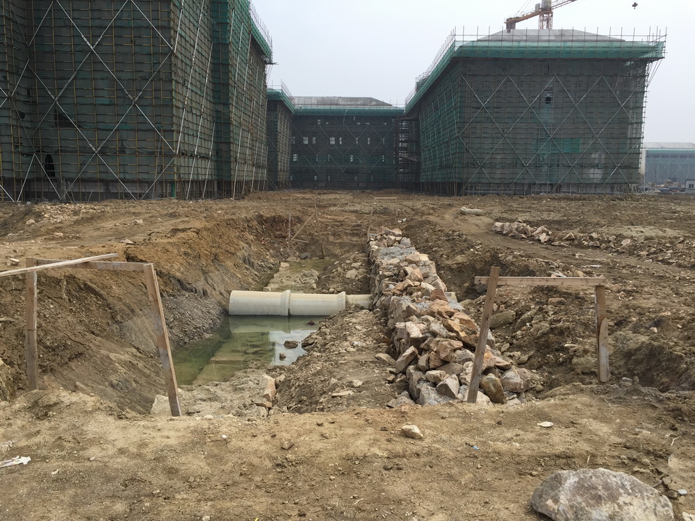 5. 南中轴大道西侧驳岸毛石挡墙砌筑完成80%;