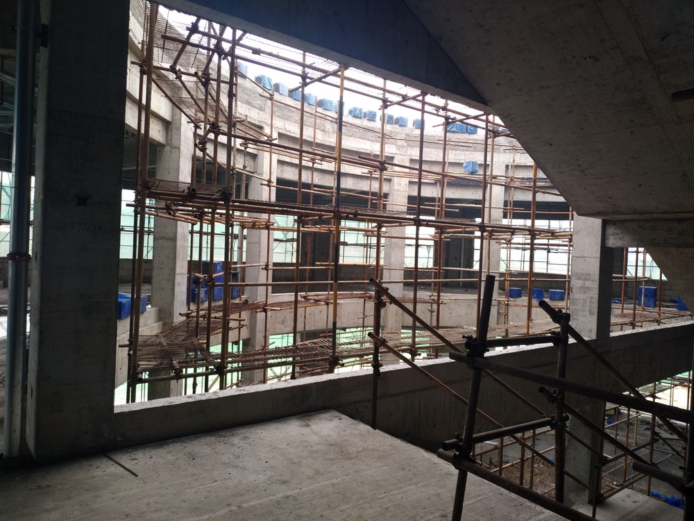 3. 体育馆满堂脚手架西侧搭设完成70%;