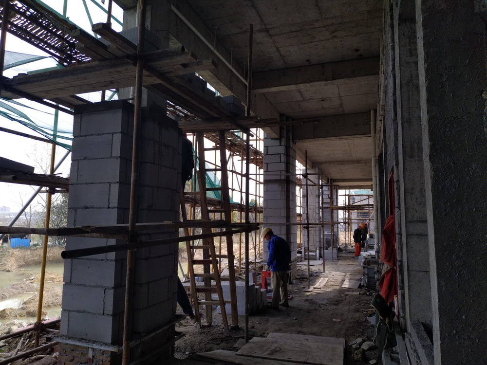 11. 艺术中心:内墙粉刷完成30%,外墙保温材料进场施工;