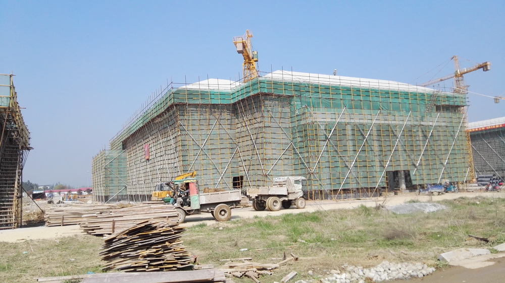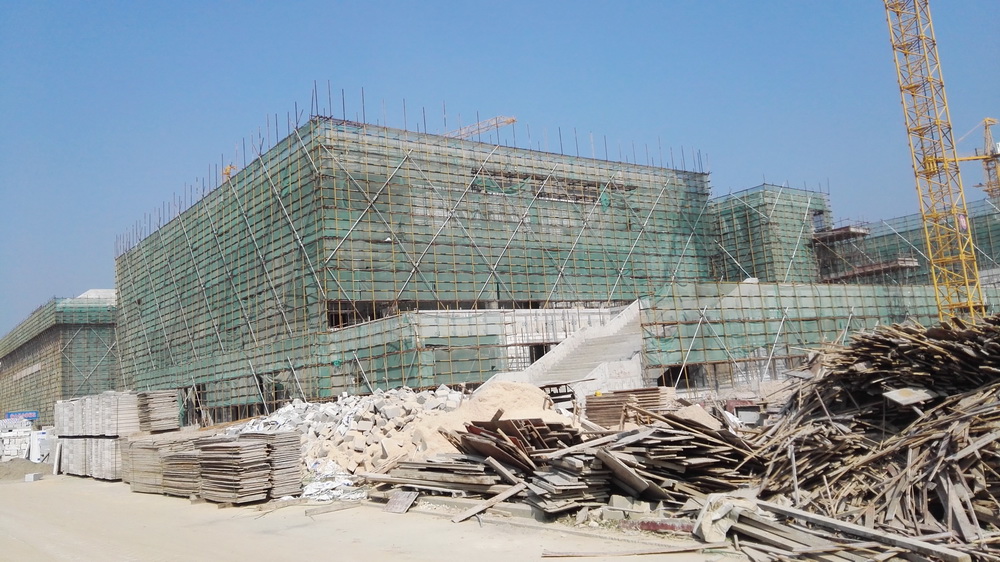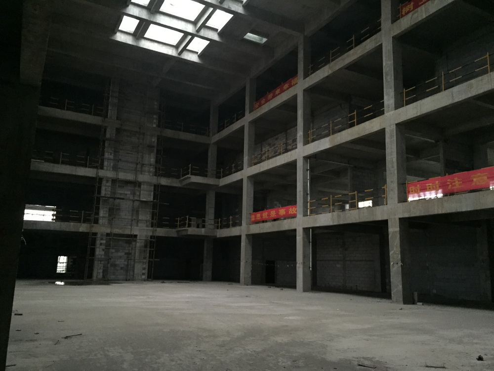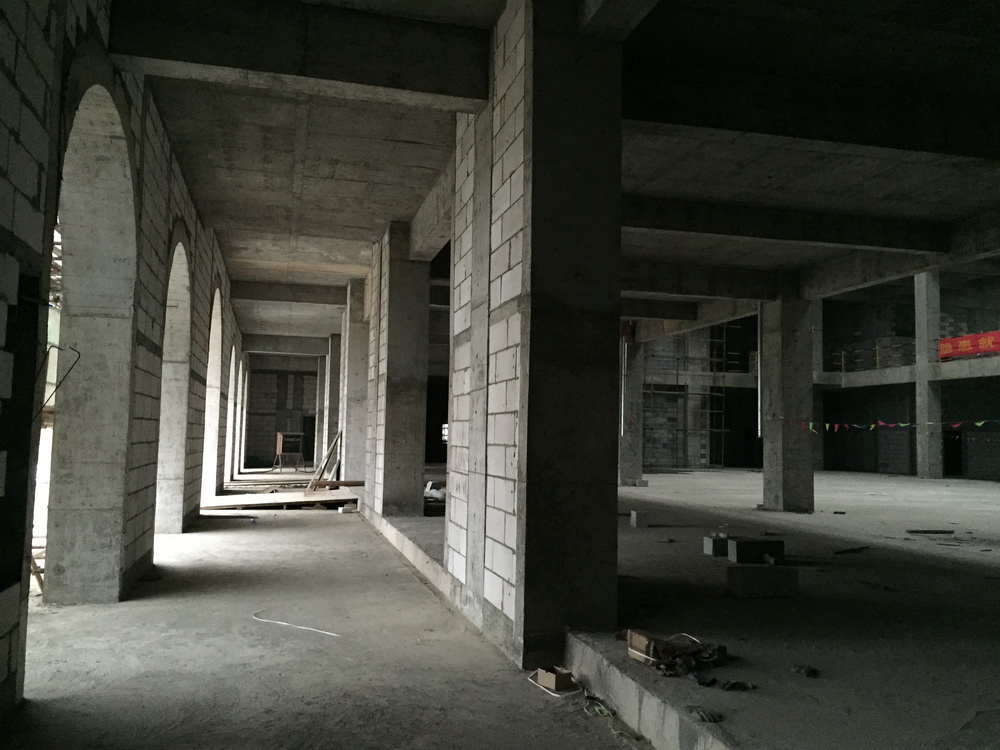 2. 体育馆一层墙体完成,二层完成90%,三层完成50%;
