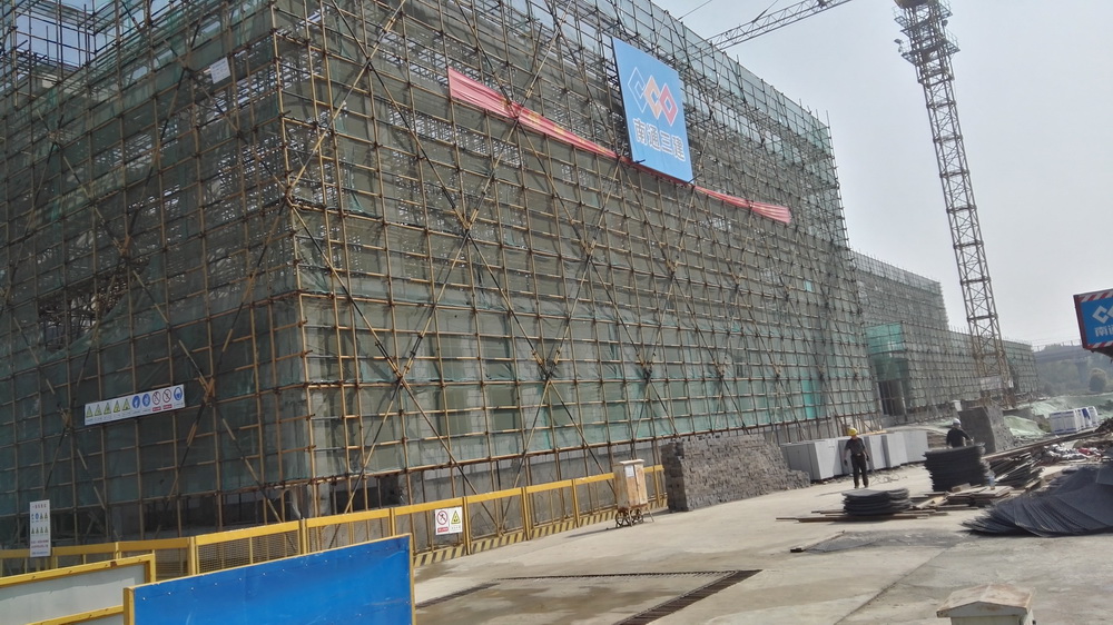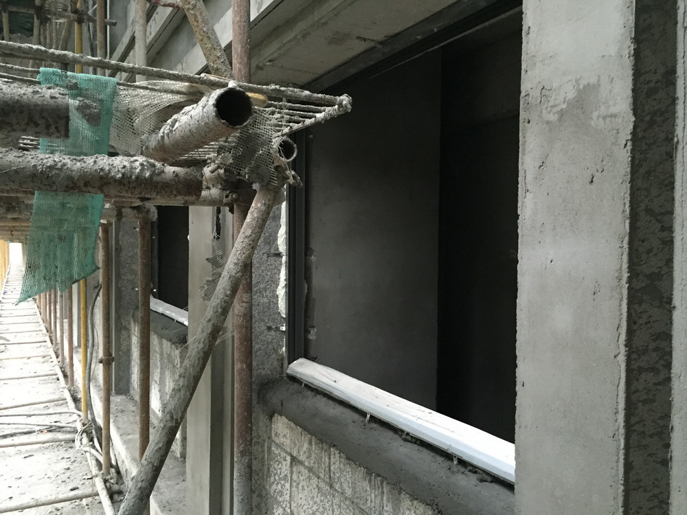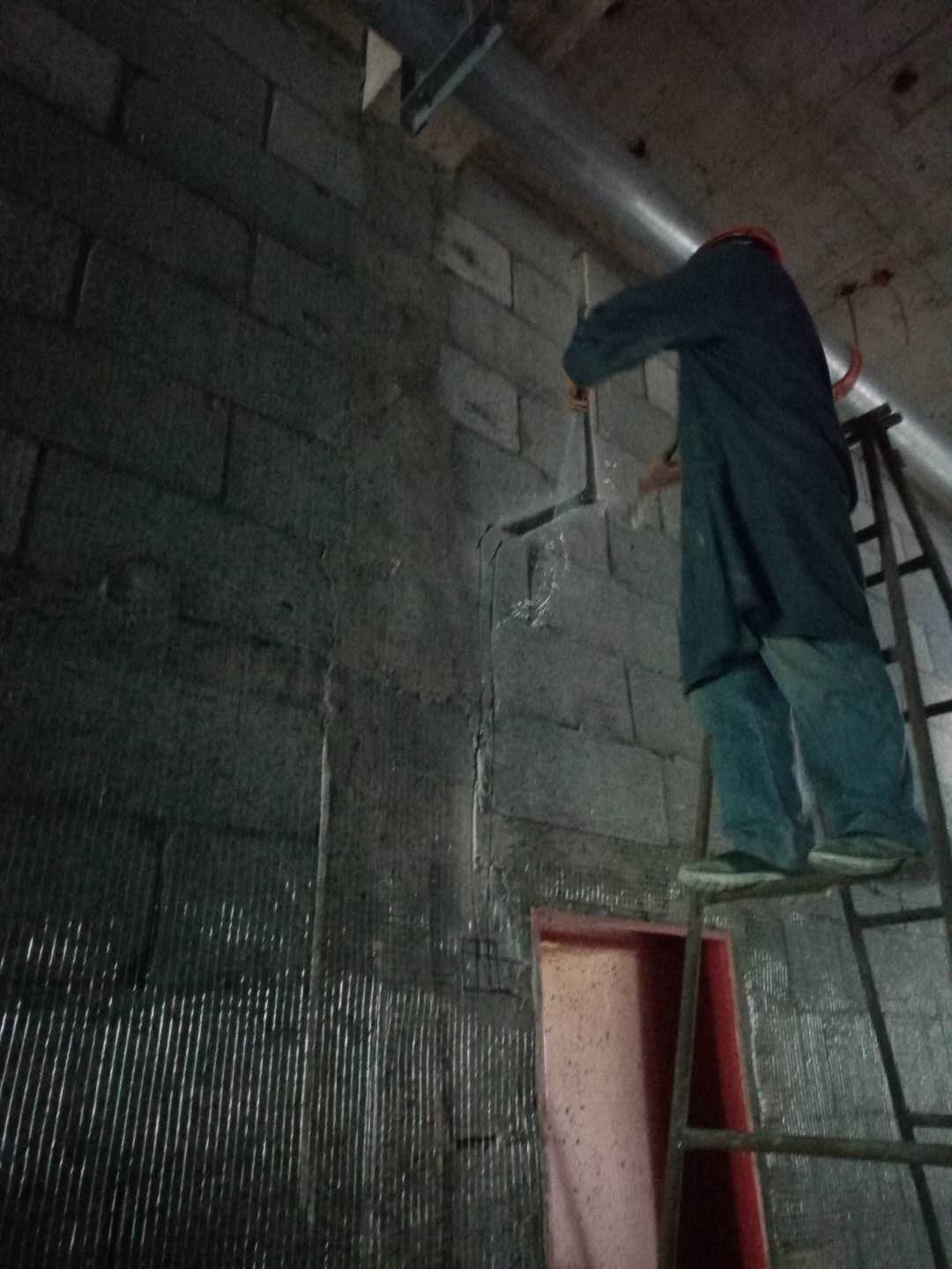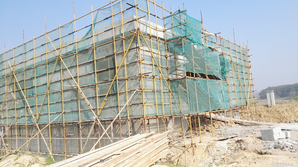 2. 行政楼粉刷面钢丝网安装。