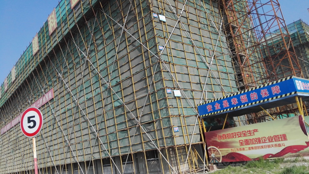 3. 体育馆满堂脚手架西侧搭设完成70%;