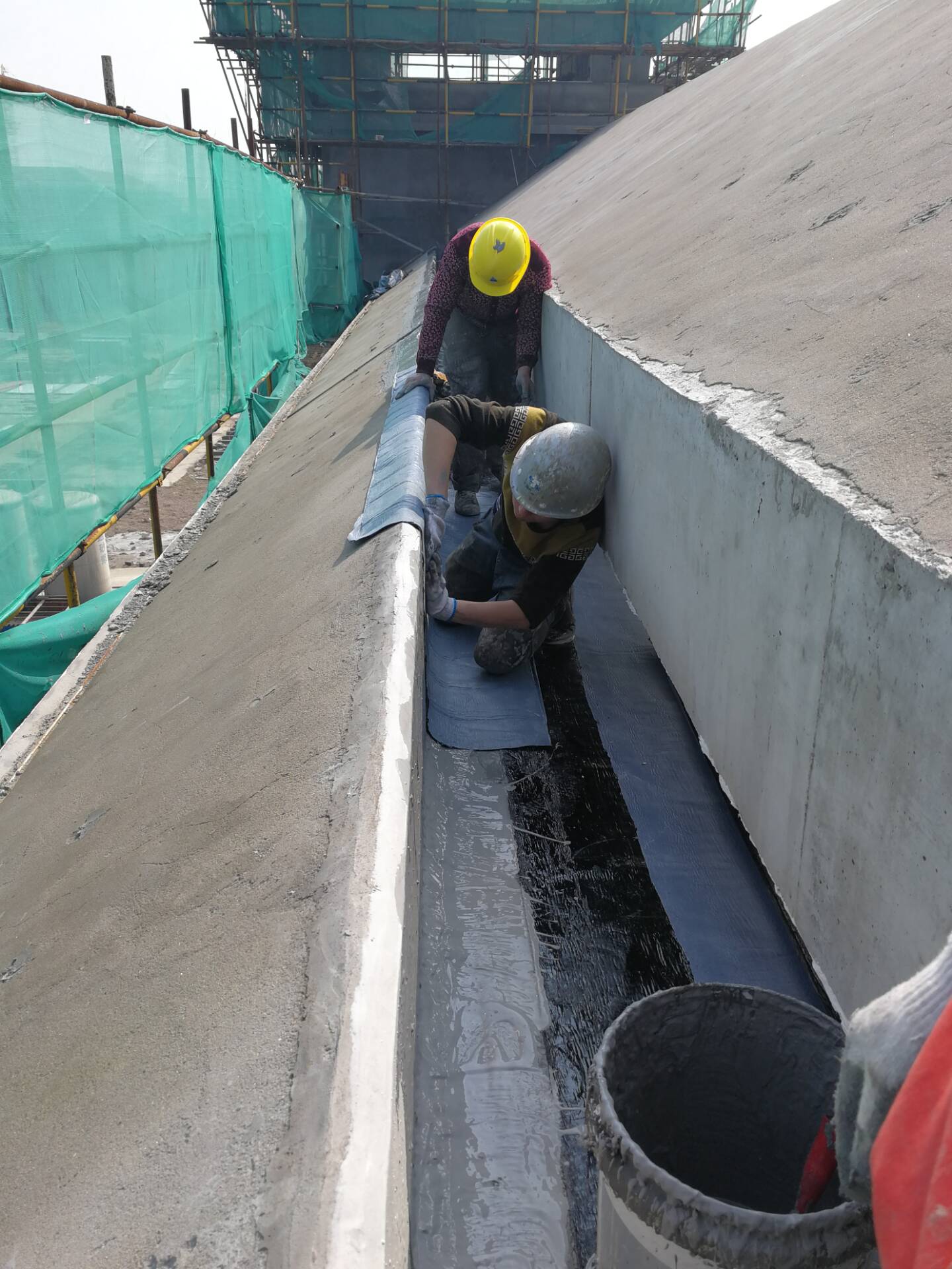 (1)学生宿舍组团1#-7#:水泥基涂膜完成60%,卷材防水完成40%。