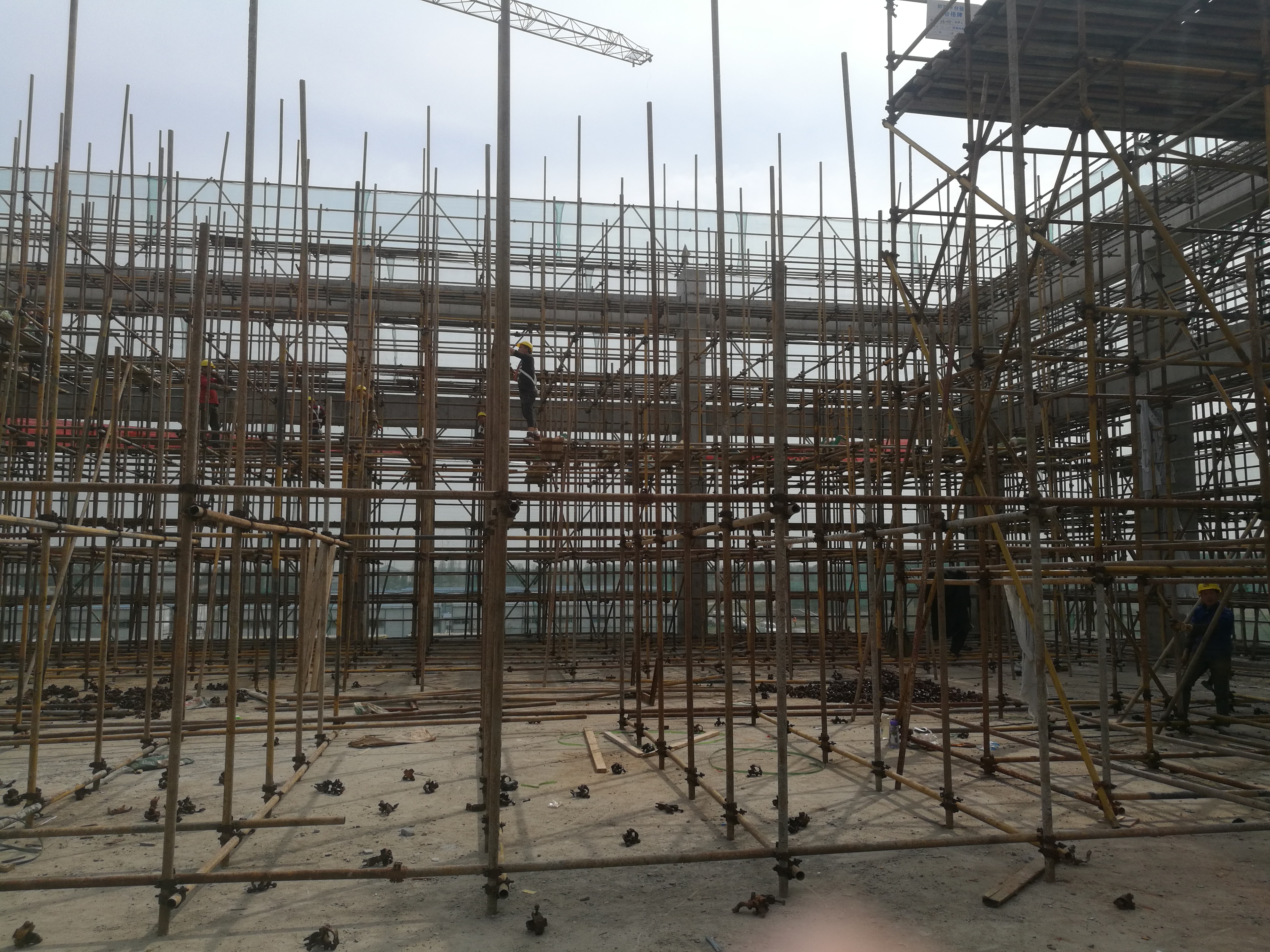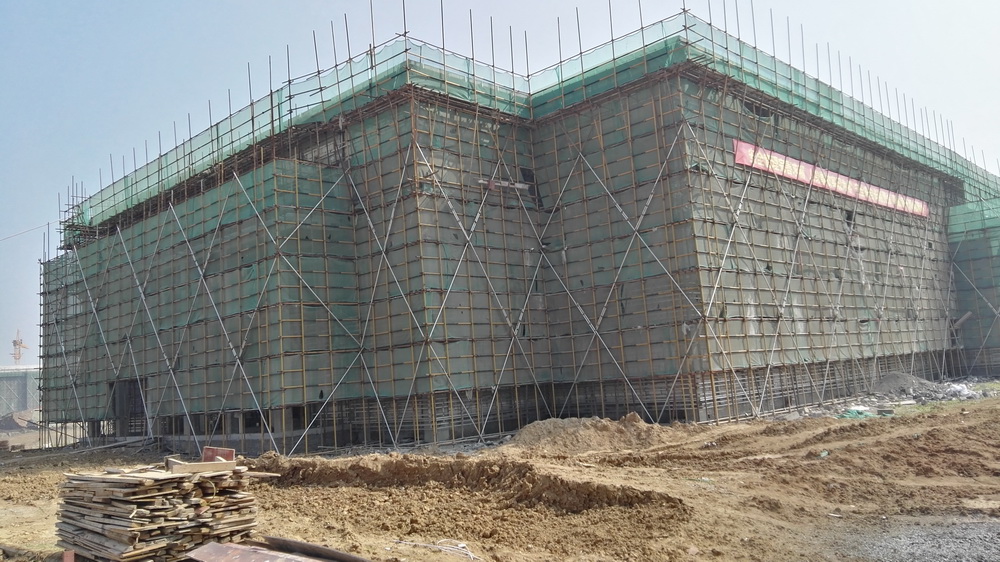 3. 体育馆满堂脚手架东侧搭设完成60%;