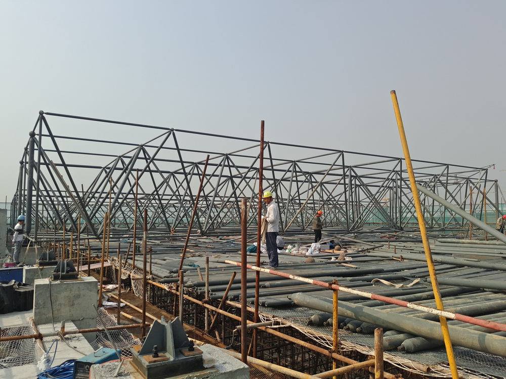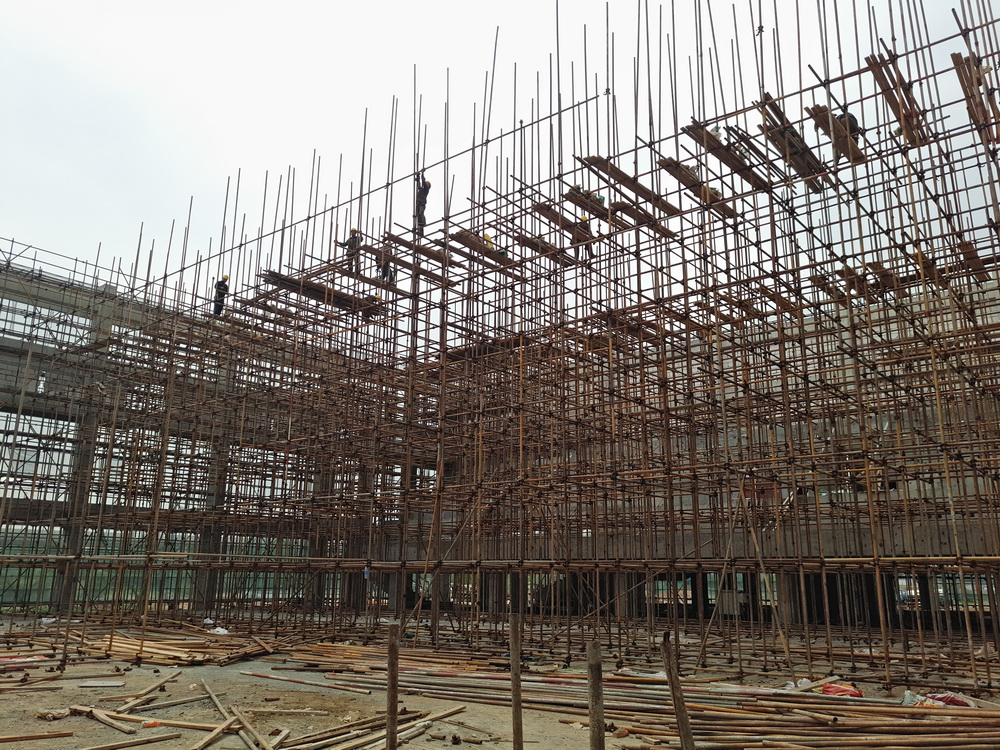 3. 体育馆满堂脚手架东侧搭设完成80%;