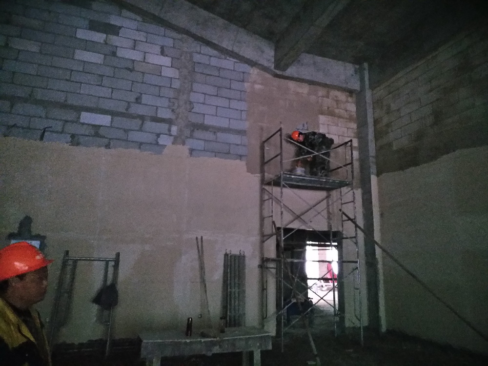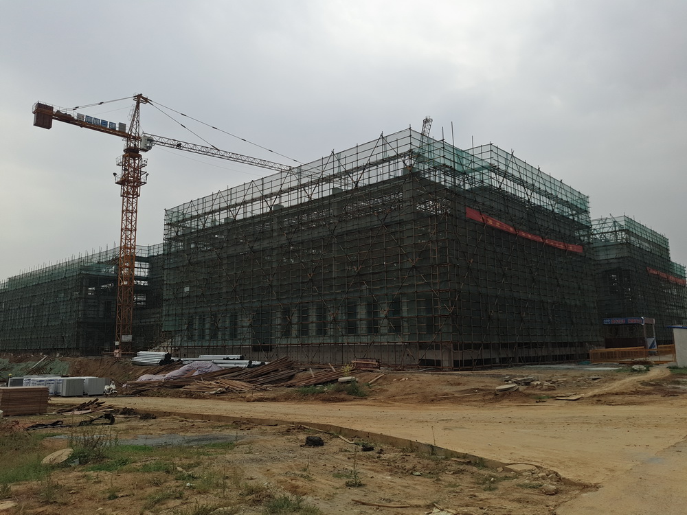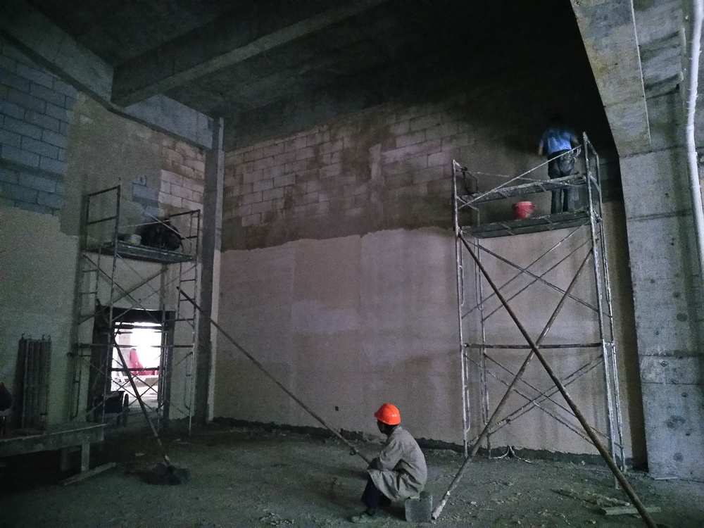 2. 体育馆一层墙体完成90%,二层墙体完成50%;