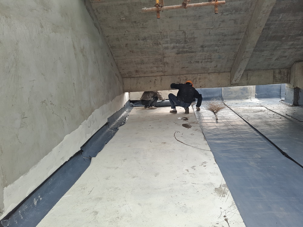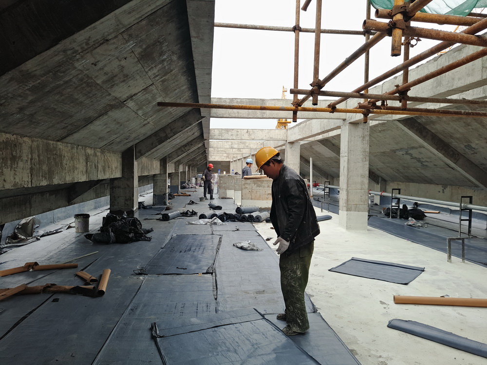 (1)学生宿舍组团1#-7#:水泥基涂膜完成60%,卷材防水完成40%。