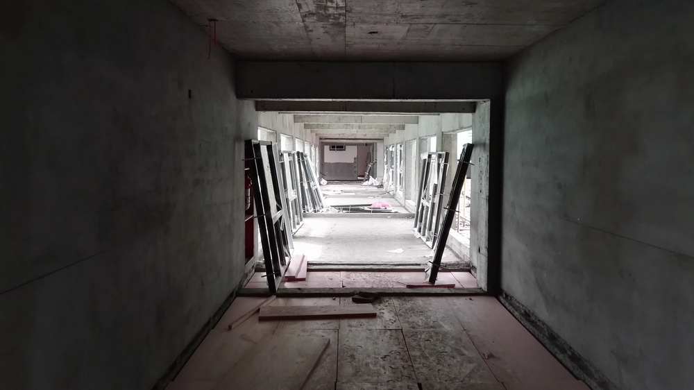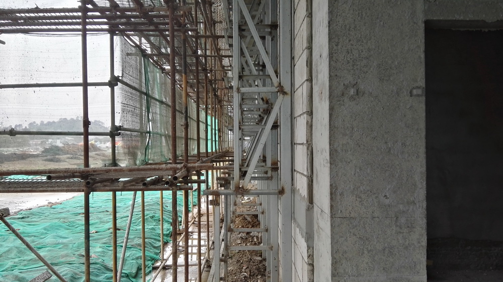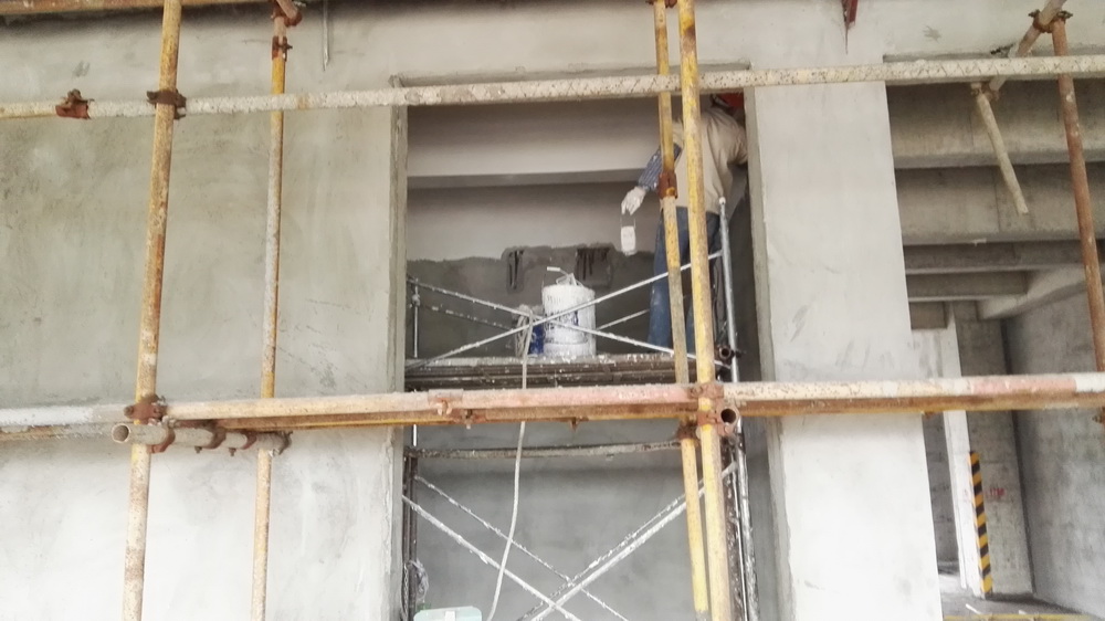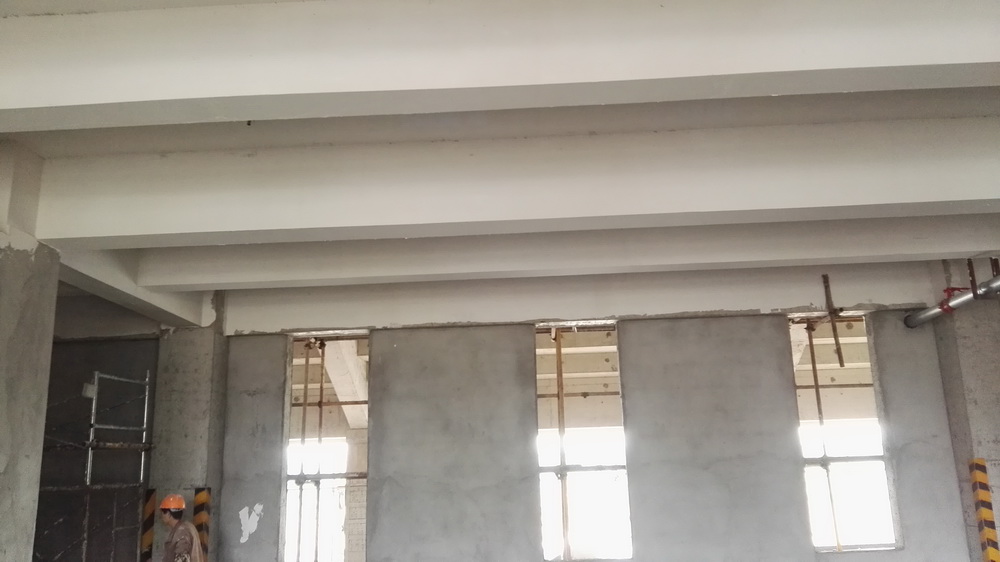 (2)教学组团(理科楼。文科楼、图文信息中心、大学生活动中心、行政楼、公共教学楼、后勤一、后勤二、一食堂、二食堂)内外墙粉刷完成80%;室内腻子完成50%;