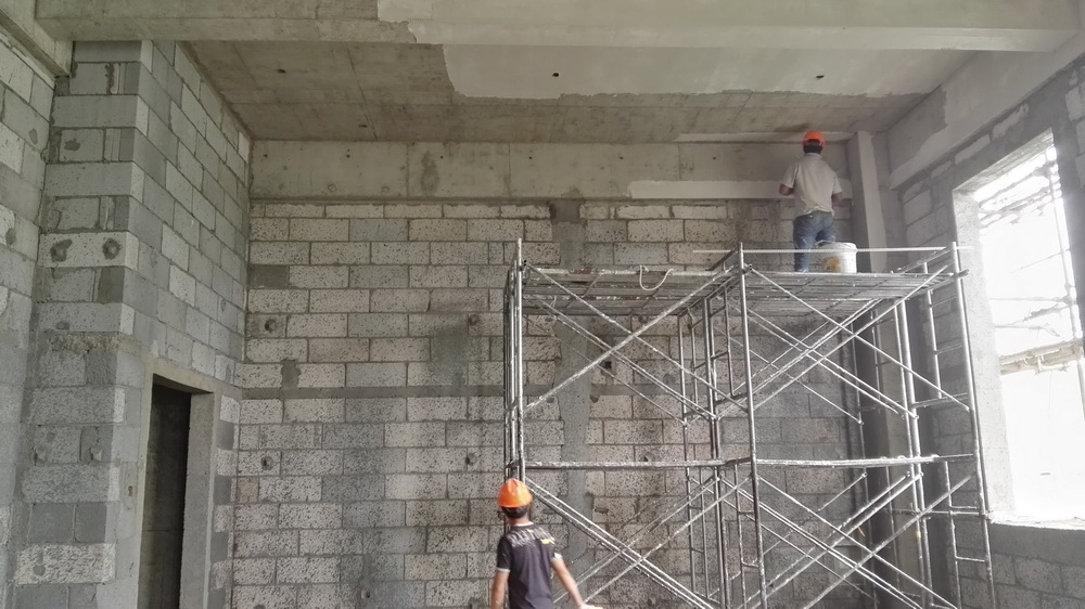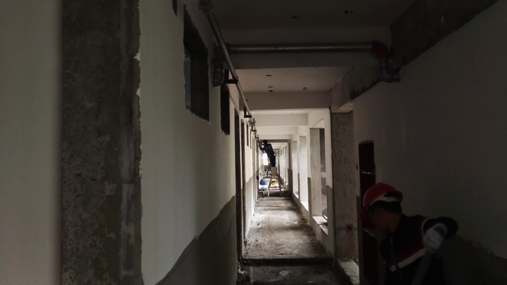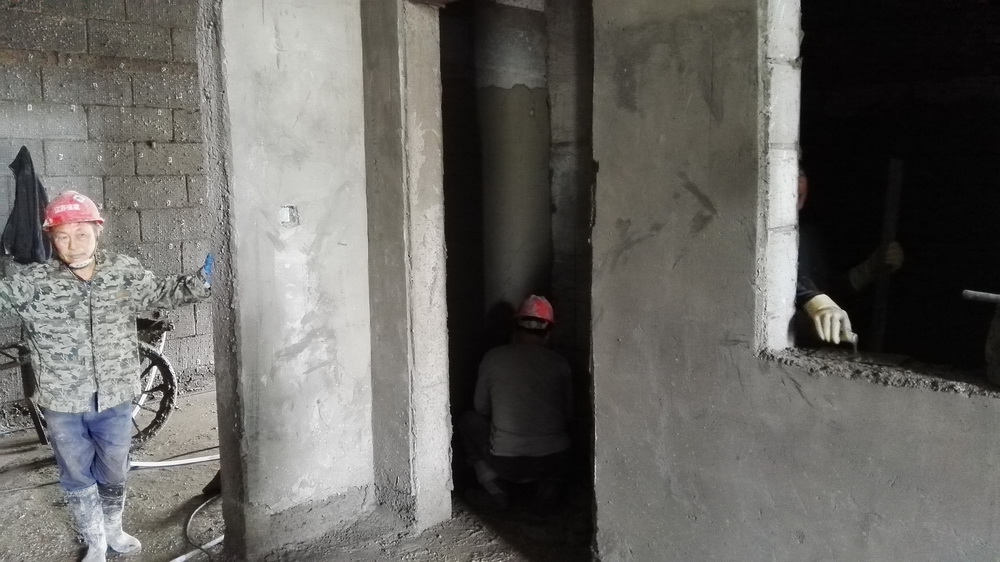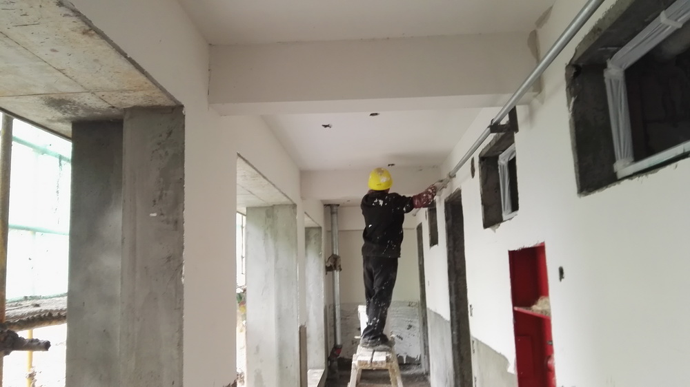 3. 瓦工开始粉刷,水电班组开槽布管。