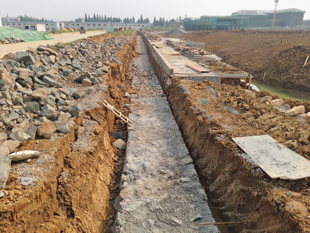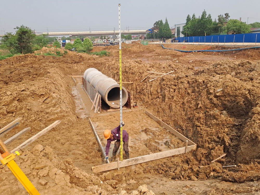 4. 南大门东侧涵管基础完成100%,累计完成100%。