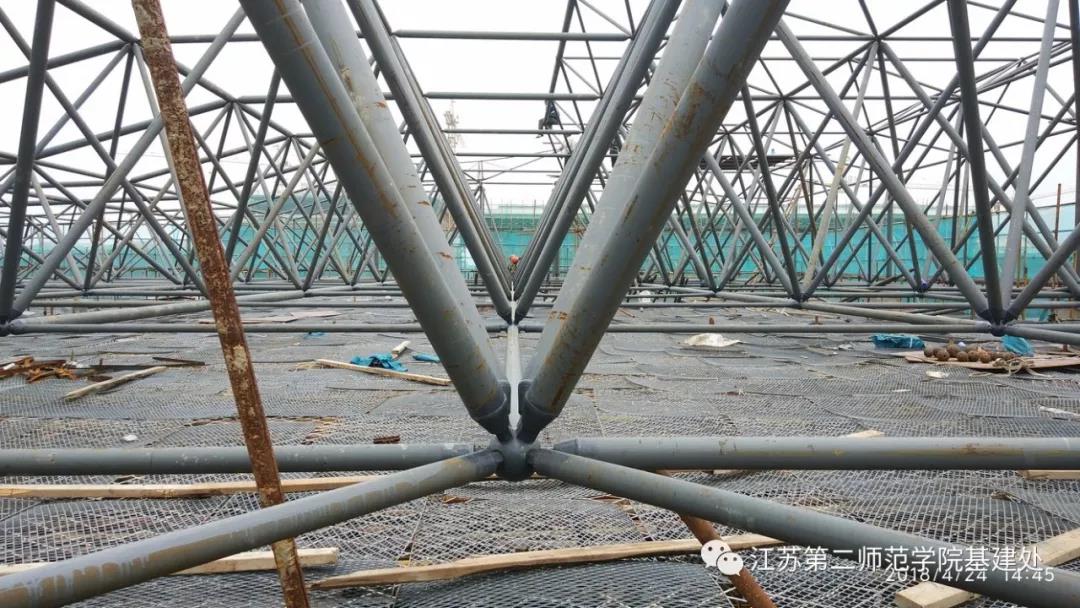 3. 体育馆满堂脚手架西侧搭设完成90%;