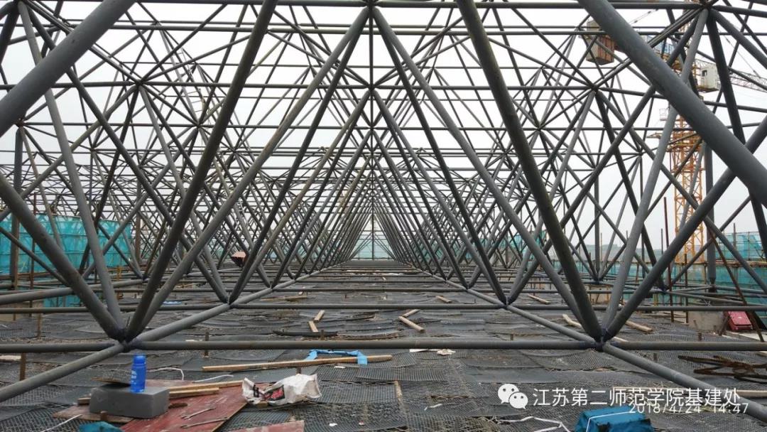 (1)教学组团外墙(除一食堂、大学生活动中心)龙骨完成安装90%。