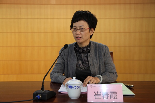 崔春霞代表省教育厅对学员表示热烈的欢迎,并对此次"国培计划"研修项目的顺利开班表示祝贺;她向学员们介绍了江苏省教师队伍的建设以及教师培训的大致状况,充分肯定了我院在培训专家聘请、培训形式选择等方面的专业性,指出此次"国培计划"为学员提供了良好的平台,学员在培训结束后,应当发挥示范引领作用,并保持相互间的交流。