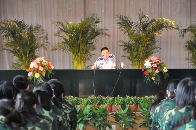 军训动员大会结束后,沿江派出所副所长李学松为参加动员大会的参训新生做了一场大学生安全教育讲座,李学松首先对学校开展大学生安全教育活动的目的、意义以及必要性进行了详细的阐述,使同学们进一步意识到安全教育的重要性,并围绕人身安全、财产安全、交通安全、消防安全、外出安全、网络安全、食品安全等方面的内容进行了生动的讲解,整场讲座内容紧凑、语言风趣,所列举的案例贴近学生生活实际,达到了预期效果。