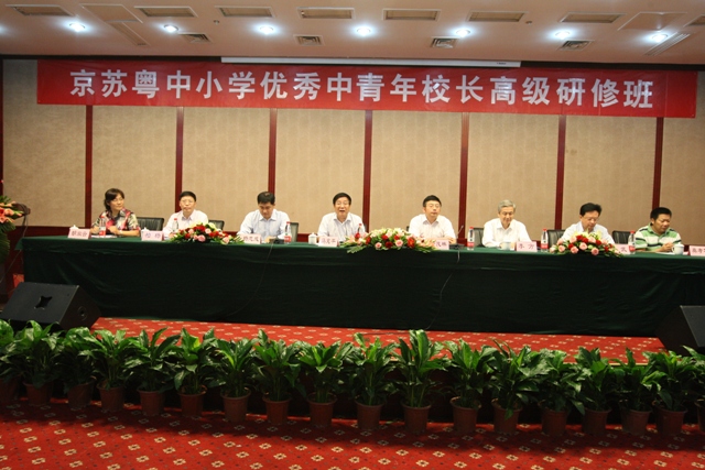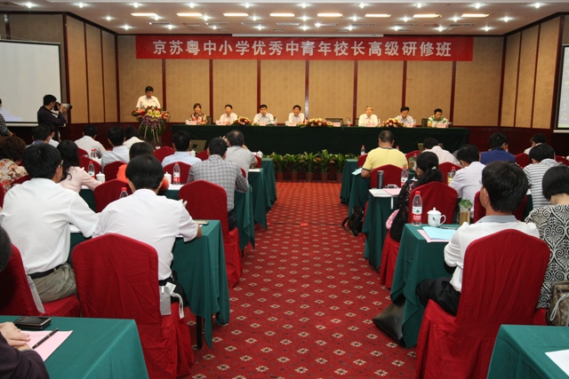 "京苏粤优秀中青年校长高研班"由三地教育行政部门和培训机构共同组织实施,为期1年。是一次跨区域、高层次、高水平的联合行动,采用"双主体、多基地,研训一体、个性化学习"方式进行。今年5月在江苏完成了第一阶段的理论培训和跟岗学习。