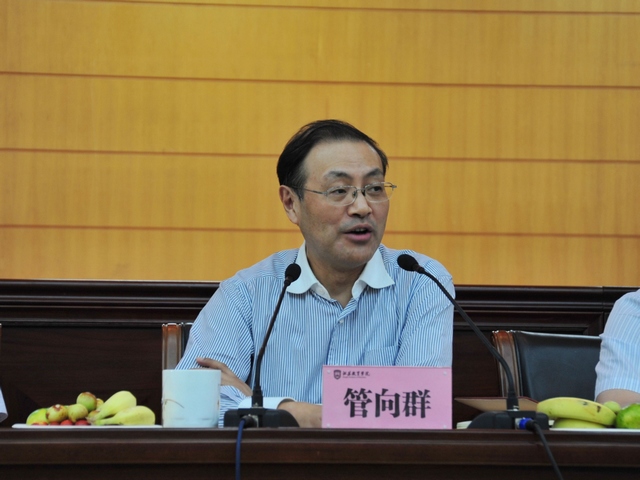 最后,管向群发表重要讲话。他首先代表院党委、行政向全院教师、教育工作者和离退休老教师致以节日的问候,向光荣从教三十年的同志致以崇高的敬意!向今年晋升高一级职称的教师表示热烈的祝贺!向今年来我院工作的新同志表示诚挚的欢迎!随后,管向群围绕“当代教师核心价值观构建”这一主题,结合自己投身教育事业三十年的经历与体会,向新进教师提出了六点希望,即:充满爱心、甘于奉献、乐于学习、加强修养、投身实践、勇于创新。管向群说,今年,是教院建院60周年、教科院成立10周年的庆典之年,是我院事业发展谋求突破的机遇之年,希望大家以强烈的事业心和高度的责任感,以奋发有为的精神面貌和求真务实的工作作风,解放思想、与时俱进,同心同德、开拓创新,继续为全力实现改制目标、推动我院事业又好又快发展作出应有的努力,以实际行动向我院六十华诞献礼。