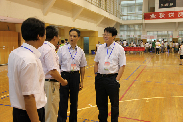院领导班子高度重视迎新工作,9月8日一早,院党委副书记、副院长程建军,常务副院长周成平、副院长王仁雷、张勤,纪委书记刘青平,副院长刘继红在相关职能部门负责人陪同下,分赴三个校区新生报到现场指导迎新工作。院领导在各个院系新生接待点询问了迎新工作的进展情况,并且亲切慰问了负责新生报到工作的老师和学生志愿者。他们对井然有序的接待工作表示充分肯定,对迎新工作的创意亮点给予高度赞赏,并与新生及家长亲切交谈。在"绿色通道",院领导询问了困难学生的家庭状况,表示我院会尽其所能给予同学们帮助,并勉励在场的同学,不畏困难,勤奋求学。在学生宿舍,院领导仔细检查宿舍卫生状况和生活设施情况,看望新生,鼓励他们加强生活自理能力的培养,以更加独立的姿态迎接即将开始的大学生活。