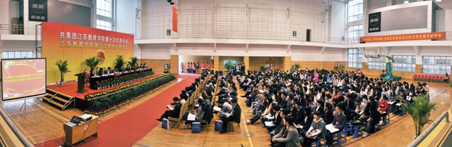 4月的校园,草长莺飞、春意盎然。11日,草场门校区体育馆内花团锦簇、红旗飘扬。下午二时,共青团江苏教育学院第十次代表大会、江苏教育学院第六次学生代表大会隆重举行。团省委副书记沈海斌,院党委副书记、副院长程建军,常务副院长周成平,副院长王仁雷,院纪委书记刘青平,团省委学校部部长俞锋、组织部副部长朱熹等领导出席大会,兄弟高校和地方团委书记、兄弟院校学生会主席、学院各职能部门负责同志应邀列席大会。会议由团委副书记刘莹主持。