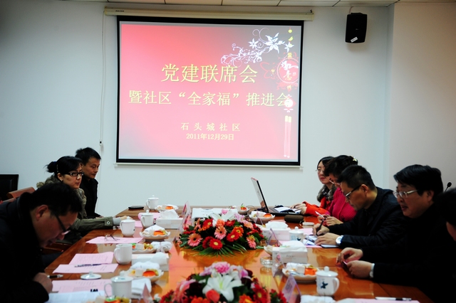 王燕君向与会同志介绍了近期社区工作情况。各成员单位负责人就2012年度结对项目分解工作达成了普遍共识。大家一致认为,成员单位联席会议这一形式,大大加强了各单位与驻区之间的联系,对推进和谐社区建设、营造安定团结的发展氛围将起到积极而重要的作用。