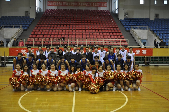由省台联和我院共同举办的第十届“苏台学子杯”海峡两岸大学生篮球邀请赛日前在我院体育馆隆重举行。全国台联副会长、江苏省台联会长胡有清,江苏省台联联络部部长曹茂德,我院纪委书记刘青平,统战部部长王宵前,体育部主任张彪出席开幕式。