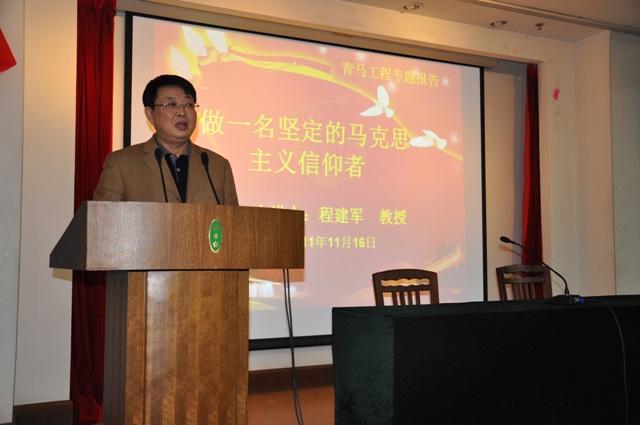 本期培训班从11月初开班以来,分别在三个校区开展了形式多样、丰富多彩的活动,先后举办了办公技能培训、礼仪培训、马克思主义基本原理讲座、无领导小组讨论、学生干部经验交流会、活动方案策划大赛、社会调研及拓展训练等活动,取得良好效果。11月16日,党委副书记、副院长程建军教授亲自为三个校区青马工程基础理论培训班的学员作了题为《做一名坚定的马克思主义者》的讲座,同学们反响热烈。