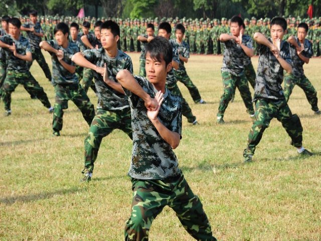 "向前,向前,向前……",伴随着激昂的《解放军进行曲》,各军训方队在院旗的引导下,迈着整齐的步伐一一经过主席台,接受与会领导和教官的检阅。同学们身着军服,精神饱满,步伐矫健,口号响亮,充分体现出我院新生青春洋溢的蓬勃朝气和报效祖国的壮志豪情。示范方队和施训教官进行了女子匕首操、女子防身术、男子应急棍、男子擒敌拳和摔擒技术表演,他们整齐划一的动作和刚劲有力的气势,赢得了在场领导和师生们的阵阵掌声。