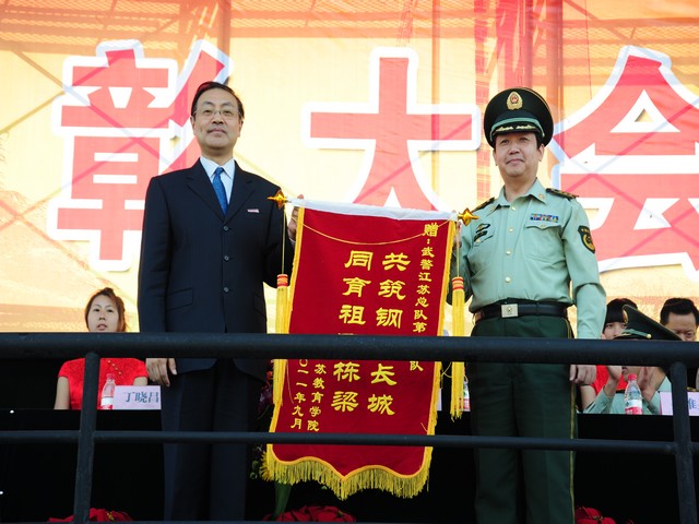 党委书记管向群向武警江苏总队第二支队赠送锦旗