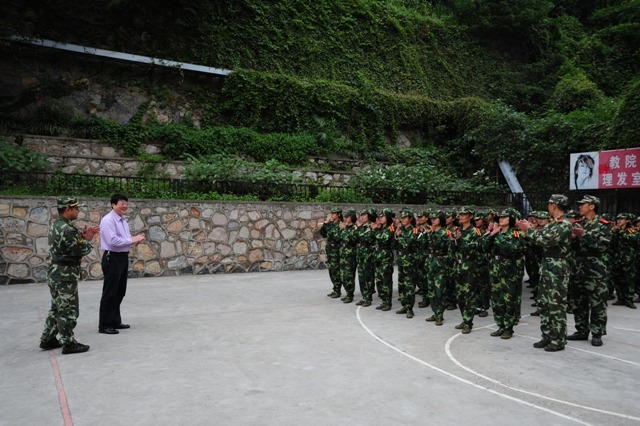 程书记逐排看望了施训教官和参训学生,仔细询问了军训工作安排、学生思想动态和身体情况等,并对教官们认真施训表示衷心的感谢。程书记一行还饶有兴趣地观看了女子匕首操和女子防身术两个方阵的表演。