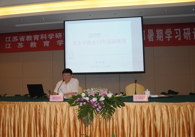 会上,胡金波副厅长作了题为《高水平普及15年基础教育》的辅导报告。报告分别从江苏基础教育取得的"四大成就"、呈现的"四大差距"、面临的"四大转型"等方面,全面阐述了我省基础教育所取得的成绩和面临的问题。报告高屋建瓴,对全省基础教育作了全景式的描述,既有深度的理论分析,又有丰富的实践剖析,为我院中层干部进一步了解全省基础教育整体态势上了生动的一课。胡厅长非常关心我院的发展,殷切勉励我院发奋图强,与时俱进,把我院打造成我省"优秀人才培养的特色基地"、"教师继续教育的首选基地"、"教育教学的创新基地"、"创业创新创优的示范基地"。与会同志反响热烈。