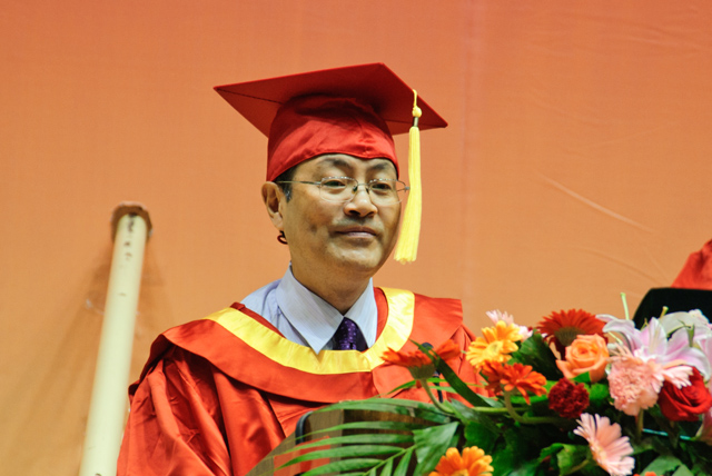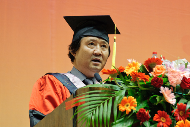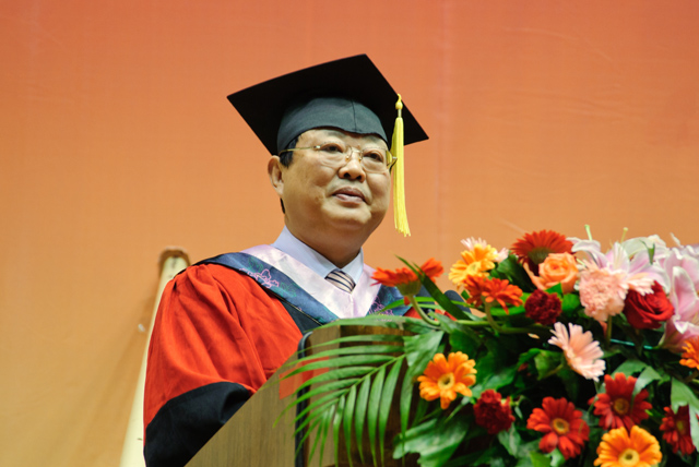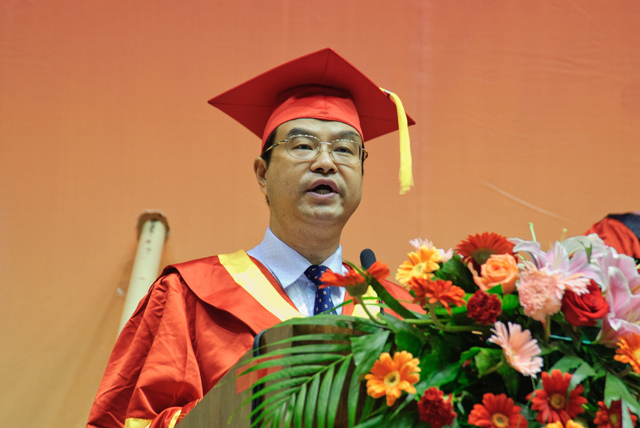 丁晓昌说,四年来,同学们勤奋学习、刻苦钻研,善于创新、勇于实践,在认真完成各项学习任务的同时,主动参与并积极支持学院事业的成长与发展,取得了令人欣慰、值得骄傲的成绩。作为中华民族伟大复兴的新生力量,即将走出校园、步入社会的同学们使命光荣,任重道远。他勉励大家树立远大理想,坚持勤奋学习,努力投身实践,全面协调发展,以热情和睿智为笔,矢志不渝,勇于担当,在不同的道路上写就同样精彩纷呈的华丽诗篇。最后,丁晓昌祝愿全体毕业生在今后的日子里没有各种伤不起、没有悲催和浮云,青春旅程更加给力、风光无限。丁晓昌满怀深情、生动诙谐的讲话在毕业生中激起了强烈的共鸣,博得了在场师生和家长们的阵阵掌声。
