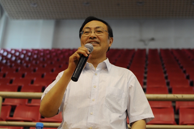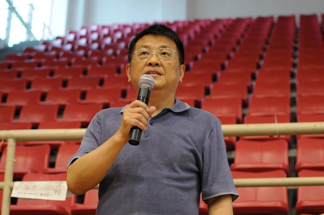 管向群书记宣布首届离退休教职工趣味运动会开幕。