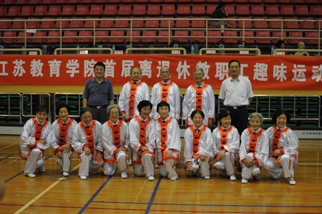 原教管系副主任周在人带领太极拳队上场表演了太极拳。他们在悠扬的音乐声中翩翩起舞,整套动作轻柔、舒缓,表现出太极拳宇宙精神的"生命之美"和"生态之美"。他们的表演赢得了全场热烈的掌声。