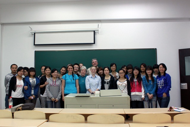 在两个多小时的时间里,施罗耶教授用幽默生动的语言深入浅出、言简意赅地向同学们介绍了美国的风土人情和历史文化。在讲解的同时,施罗耶教授还注重与台下学生之间的互动,他风趣的谈吐和渊博的学识多次博得了同学们热烈的掌声。整个讲座进行的过程中充满欢声笑语,师生交流融洽而和谐。