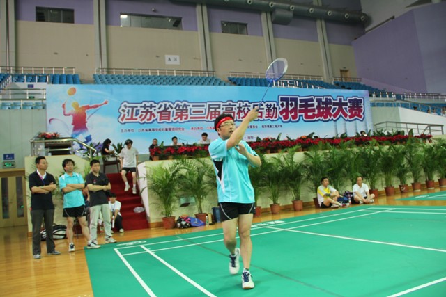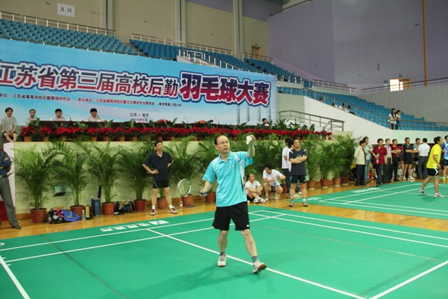 5月21日至22日,江苏省第三届高校后勤系统羽毛球大赛在南京信息工程大学举行。我院组成了由副院长王培君为领队,胡元强、王建宏、刘军、何俊为队员的强大阵容参赛。比赛中,运动员顽强拼搏,连克南京大学等强队,以精湛的球技和顽强的作风赢得了兄弟高校同仁的阵阵喝彩。经过激烈角逐,我院后勤羽毛球队名列小组第二,顺利进入第二轮,在强手如林的三十四支参赛队中闯入16强。