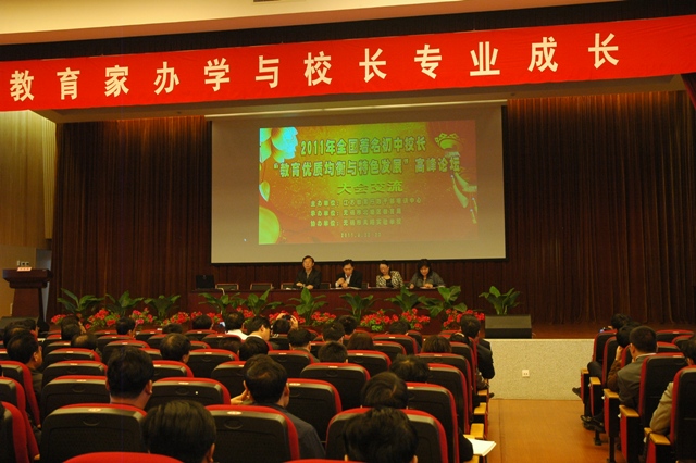 在举国上下深入学习中共中央十七届五中全会及全国教育工作会议精神,全面贯彻落实《国家中长期教育改革和发展规划纲要》各项任务的重要时刻,4月22日、23日,首届全国著名初中校长高峰论坛在无锡市顺利召开。本次论坛活动由江苏教育行政干部培训中心和无锡市北塘区教育局共同举办,无锡凤翔实验学校具体承办。论坛活动得到了江苏省教育厅基教处、师资处,无锡市北塘区政府,全国有关省市干训中心及中国教育报等有关媒体的大力支持。来自全国的300余名初中名校校长和省级干训中心主任相聚美丽的太湖之滨,交流思想,研讨问题,分享经验,谋划未来。