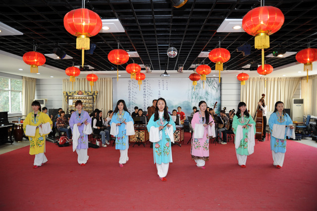 我院本次选送参演的节目共五个,分别为:昆曲《牡丹亭·游园惊梦·皂罗袍》、双人舞《风从草原吹过》、笛子六重奏《跑马山歌》、群舞《剪纸姑娘》及小合唱《龙船调》。参演节目形式各异,各具特色,虽数量不多,却涵盖了此次展演艺术表演类中的声乐、舞蹈、戏剧三个分项。演出时间不长却精彩纷呈,为现场师生带来了高水准的艺术享受。