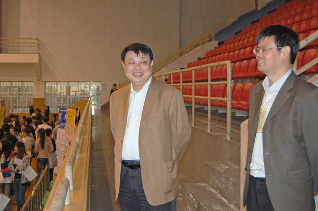 4月16日,春风拂面,暖意融融,由江苏省高校招生就业指导中心与我院就业指导中心联合举办的“江苏省百校联动就业活动”之江苏教育学院2011届毕业生春季校园招聘会在我院体育馆拉开帷幕。各院系学生工作负责人、辅导员等出席招聘会。院党委副书记、副院长程建军,省招就指导中心书记胡建平亲临招聘会现场,并与参展的招聘单位代表、应聘学生代表亲切交谈。