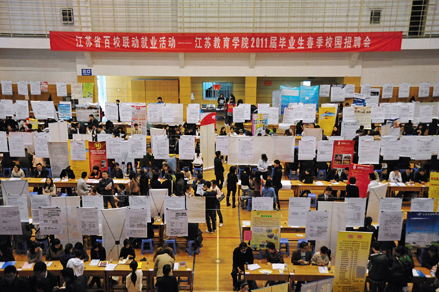 据悉,参加此次招聘会的用人单位有140余家,包括苏州新东方学校、苏宁电器、江苏博亚进修学校、江苏至善教育投资管理有限公司、江苏中广置业集团、南京大华国际旅行社有限公司、中兴软件技术有限公司、南京壹加贰联合不动产经纪有限公司等省内一些知名企事业单位。其中,教育培训、管理咨询等行业占到45%,旅游管理、商贸服务、酒店管理等占到25%,机械、电子、工业高科技企业占10%,金融证券类占10%。此次招聘会提供岗位数达2600余个,需求专业基本涵盖我院所有的学科和专业。截至招聘会结束,现场招聘单位共收到简历1100余份,初步达成意向217人次。