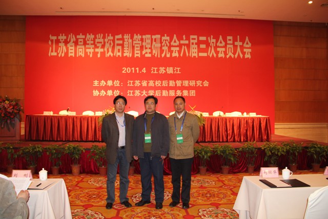 江苏省高校后勤管理研究会第六届第三次会员大会于4月9日在镇江召开,教育部发展规划司后勤改革处处长朱宝铜、中国高等教育学会后勤管理分会秘书长黎玖高、江苏省教育厅副厅长朱卫国、副巡视员步锦昆等领导出席会议,全省高校分管后勤的校领导及后勤管理、经营部门的相关负责同志参加了会议,我院副院长王培君、后勤党总支书记庞爱中、后勤管理处副处长王建宏与会。
