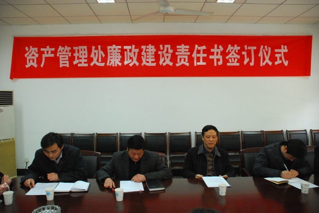 为贯彻落实院纪委〔2011〕3号文件和院党委书记管向群3月9日在院党风廉政建设大会上的讲话精神,3月24日,资产管理处、资产管理处直属党支部举行了廉政建设责任书签字仪式,院纪委书记刘青平到会并讲话,支部全体党员、处直全体工作人员参加。
