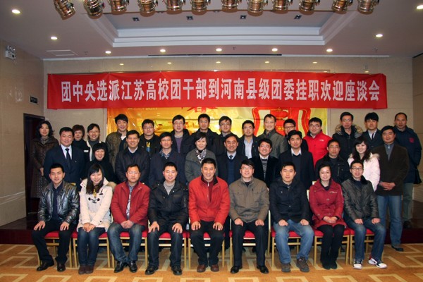 2月11日,"团中央选派江苏高校团干部到河南县级团委挂职座谈会"在河南郑州举行。共青团河南省委书记侯红亲、副书记郭鹏出席座谈会并讲话。共青团江苏省委领队、组织部部长薛锋一行,江苏到河南县级团委挂职的高校团干部,郑州、开封、洛阳、商丘团市委分管副书记及县级团委书记代表共50余人参加了座谈会。随后,21位江苏省高校挂职团干部全部到岗。据悉,我院余鑫同志已赴共青团开封市龙亭区委开始挂职工作。