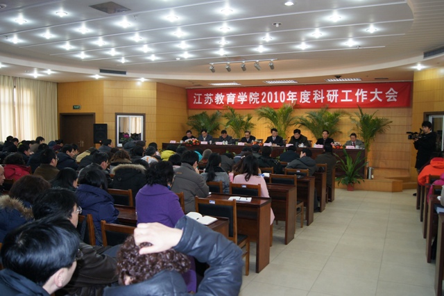 元月10日下午,教科研楼511报告厅,花团锦簇,济济一堂,院2010年度科研工作大会在此隆重召开。会议由常务副校长周成平主持,党委书记管向群,党委副书记、副院长程建军,副院长王仁雷、王培君,纪委书记刘青平,党委委员、院长助理施忠,科研处处长刘守旗在主席台就座,全院教师及科研人员参加了本次大会。