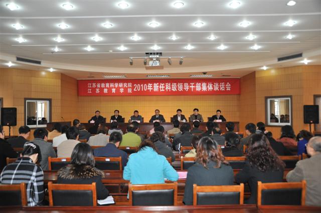 11月19日下午,江苏省教育科学研究院、江苏教育学院2010年新任科级领导干部集体谈话会在草场门校区教育科研楼隆重举行。党委书记管向群,党委副书记、副院长程建军,常务副院长周成平,副院长王仁雷、王培君,纪委书记刘青平,院长助理施忠及我院2010年全体新任科级领导干部出席了大会,会议由周成平主持。