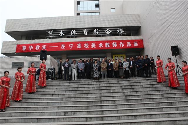 2010年10月18日下午,由江苏省美术家协会和江苏省美术家协会省直分会主办、江苏教育学院美术系承办的"春华秋实--在宁高校美术教师作品展"开幕式在我院体育馆隆重举行。省文化厅副厅长高云、省美协主席宋玉麟、省美协副主席兼秘书长尹石、省教育厅体艺卫处处长刘扬生及十余位在宁高校的领导同志和多家媒体单位与会,院领导管向群、程建军、王仁雷出席了开幕式并观看了展览。