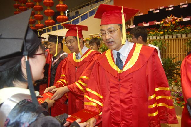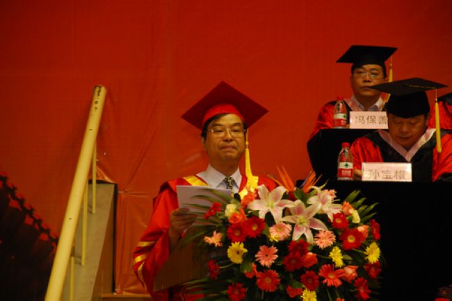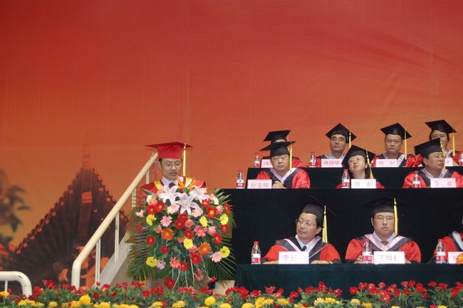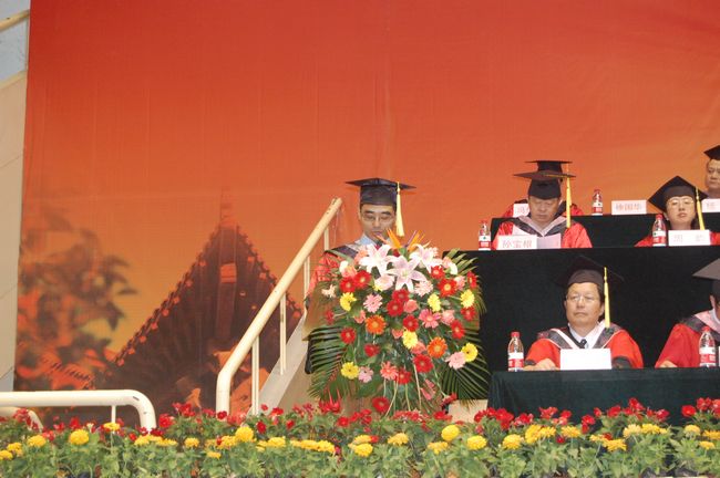 党委书记管向群宣读了2010届本科班"优秀毕业生"表彰决定,并勉励广大毕业生以优秀校友为榜样,见贤思齐,努力奋进,为母校争光添彩,为祖国经济文化发展做出更多的贡献。在雄壮优美的乐曲声中,毕业典礼进入高潮,院系领导为"优秀毕业生"颁发荣誉证书,并向每一位学士学位获得者扶正流苏,授予学位,合影留念。