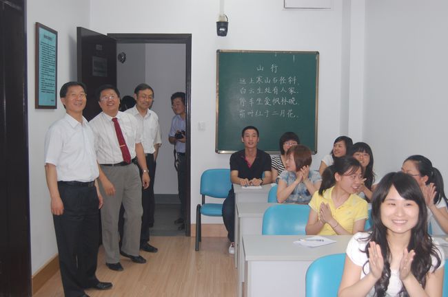 曹副省长一行在院党政领导的陪同下,视察了小行校区初等教育系、地理系和草场门校区中文系、音乐系、现代教师技能培训中心,听取有关院系负责同志关于人才培养、教育教学、设施建设等方面的介绍。曹副省长勉励有关院系的同志充分利用好已有的教学资源,进一步提炼特色、打造亮点、拓展内涵,不断提升教学科研水平和人才培养质量。视察过程中,曹副省长亲切地向正在开展互动教学的师生挥手致意,并饶有兴致地观看了部分实验实训室的功能演示。