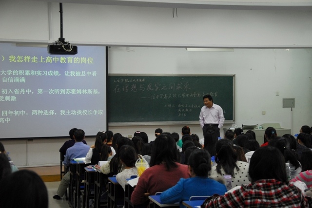 10月10日,人文学院在浦口校区教学楼227、228教室举办了文化素质课讲座,南京十二中校长、高级教师唐云龙应邀来院作了一场题为《在想理想与现实之间求索:一位基层中学校长眼中的普通高中教育》的精彩讲座,人文学院院长梁励、党总支书记魏茂恒出席,师范班学生参加了此次讲座。