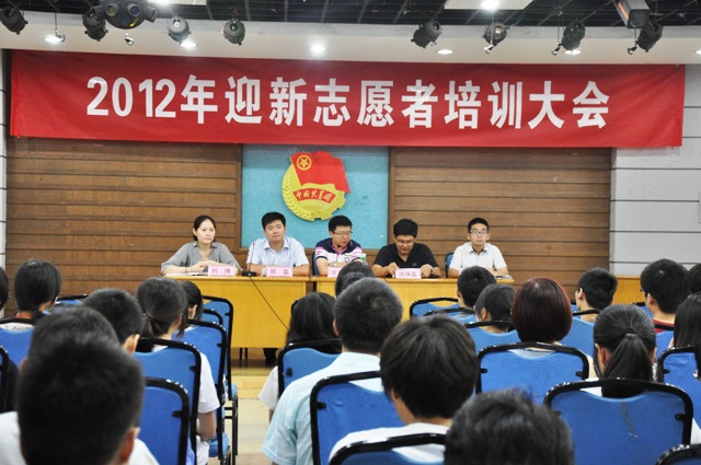 9月6日中午,团委在草场门校区大学生活动中心组织召开迎新志愿者培训大会,全面启动迎新志愿服务工作。将要参与迎新工作的60多名志愿者代表参加了会议。